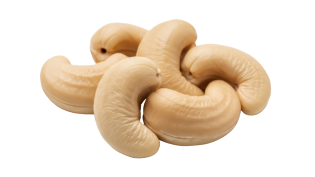 Cashew nuts scattering on a transparent background, depicting a healthy and organic snack rich in protein for vegan diets