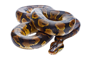Closeup of a Boa Constrictor (not Eastern Diamondback) showing detailed scales and intricate patterns, isolated on a transparent PNG background. Striking reptile image.