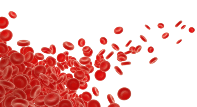 Numerous red blood cells with biconcave disc shape flowing in a stream isolated on a transparent background 1