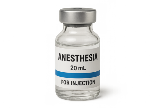 Anesthesia injection vial on transparent background for medical use