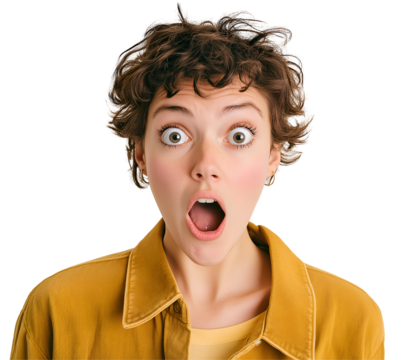 A person showing a shocked face isolated on a white background