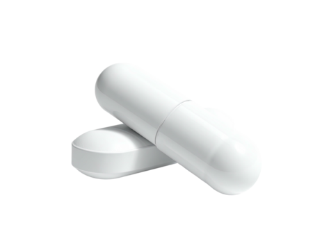 White round tablets, isolated on transparent background.