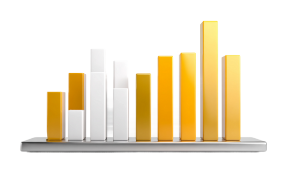 Bar chart illustration featuring three dimensional design emphasizing statistics and analytics isolated on transparent background PNG
