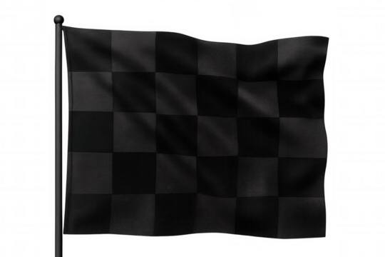 Black checkered racing flag fluttering against transparent background, symbolizing motorsport victory and competitive spirit