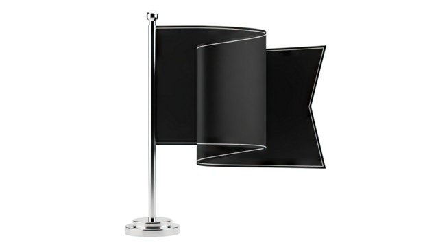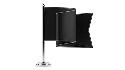 Blank black flag waving on flagpole in wind, symbolizing protest, anarchy, mourning or identity on transparent background