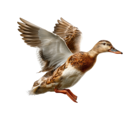 Dabbling duck in flight natural habitat wildlife captured mid-flight isolated on transparent background, png