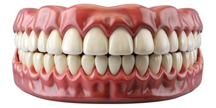 Dentures: A close-up, clinical perspective of upper and lower dentures, demonstrating precision dental craftsmanship and anatomical accuracy.