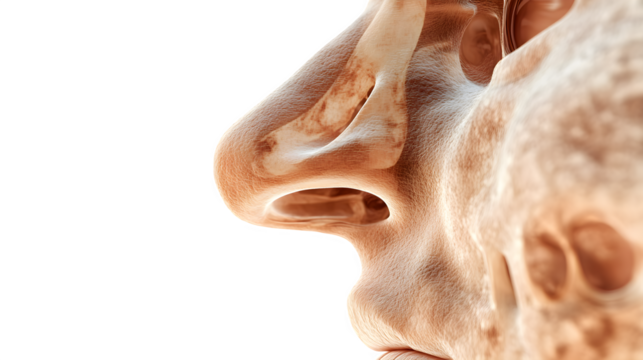 side view of nasal cavity, photorealistic HDR, anatomical accuracy, isolated on white