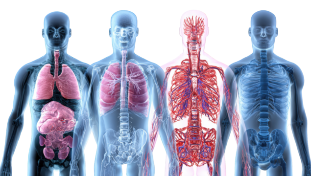 Human rib cage isolated PNG on transparent background, anatomical skeletal structure for medical study and educational resources