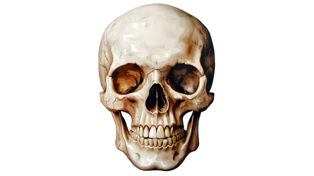 White skeletons stand, lit starkly on black. Spooky skeleton illustration for Halloween, medical illustrations, biology presentations, education, or anatomical renderings.