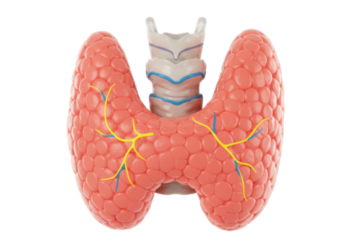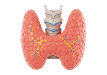 Human thyroid gland isolated PNG, endocrine system anatomy with trachea and blood vessels on transparent background