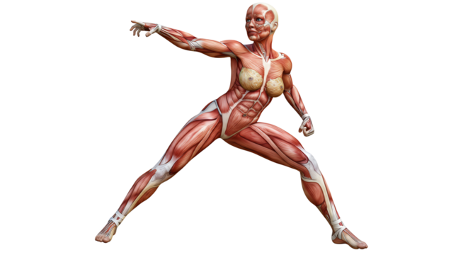 Anatomical Figure in Dynamic Pose Showcasing Human Musculature and Structure