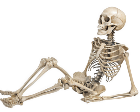 detailed human skeleton in relaxed pose, showcasing anatomical features and structure. This full body representation is ideal for educational purposes and anatomical studies