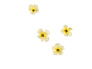 Four white flowers with yellow core isolated and cut out. Turnera Subulata known as white alder, sulfur alder, dark-eyed turnera or chanana.