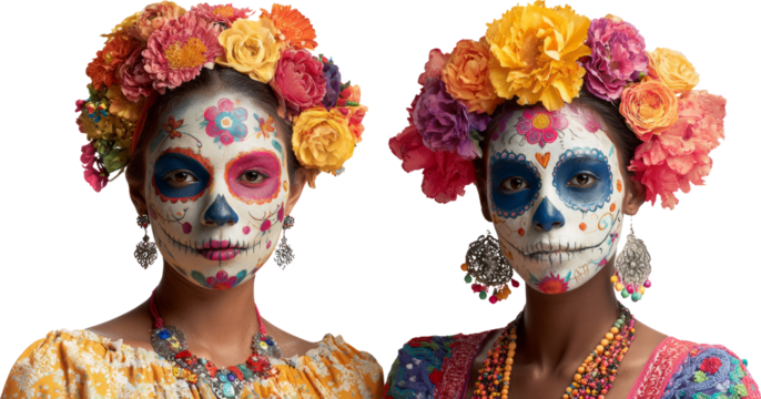 Dia de Muertos:  Festive Sugar Skull Face Paint & Flower Crowns Celebrate Day of the Dead.