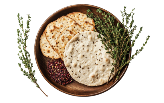 Traditional Plate of Bitter Herbs and Unleavened Bread Symbolizing Remembrance Isolated on transparent background.