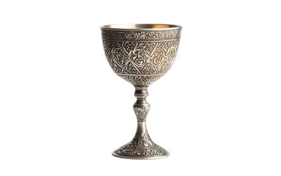 Silver Chalice with Symbolic Mandaean Etchings Representing Spirituality Isolated on transparent background.