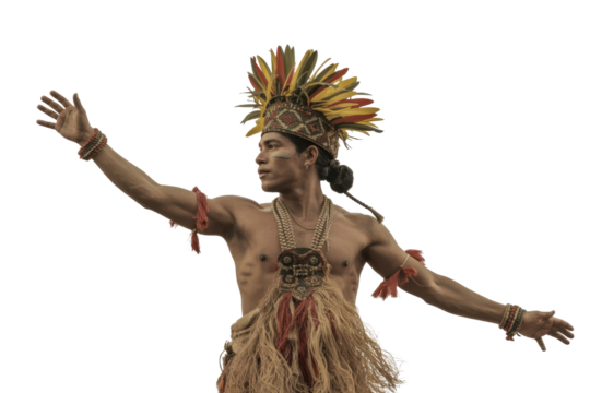 Indigenous dancer with colorful headdress