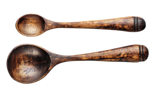 Handcrafted wooden spoons echoing ancestral cooking traditions simple lighting on deep black background