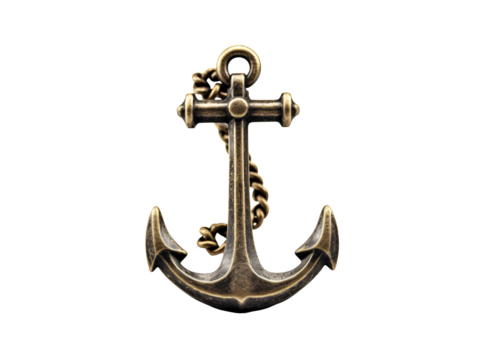 Stylized nautical anchor with chain on transparent background