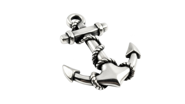 Distressed metallic anchor pendant and chain nautical hope strength on transparent background