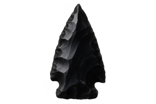 highly detailed horizontal ceremonial spear artifact featuring a luminous azure crystal head encased in platinum filigree on dark obsidian wood, studio white background. concept of advanced fantasy