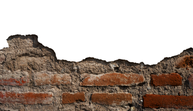 Isolated Brick Wall with Archway- Building Structure, Facade, Stone, Medieval, Fortress, Castle Gate
