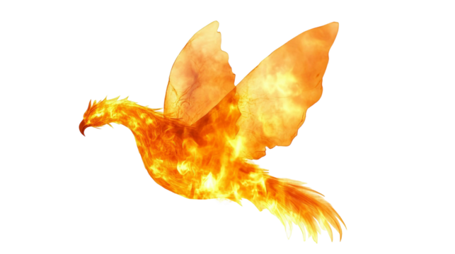 Majestic and Fiery Phoenix Rising from Flames, Symbolizing Rebirth, Transformation, and Strength in Vivid Colors against Dark Background