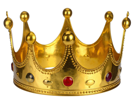 A regal, golden crown with ornate detailing, studs, and jewels, ready for a king