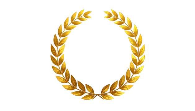 Golden laurel wreath on black background, showcasing intricate detail and classic symbol