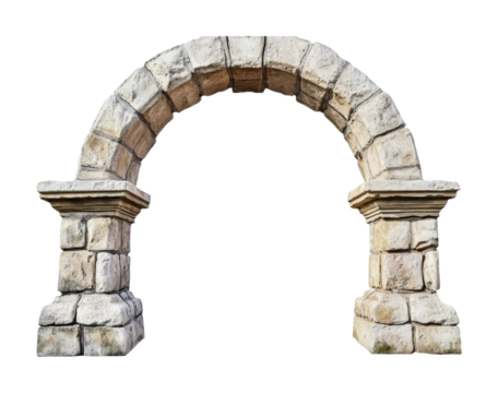 Stone archway stands tall in a neutral setting, showcasing ancient architectural design for garden or event decoration needs, cut out