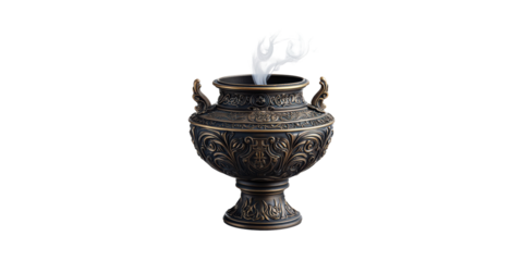 Ornate Bronze Incense Burner With Smoke. Symbol Of Spirituality And Meditation Isolated On Transparent Background