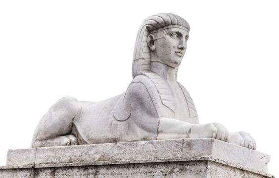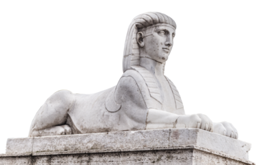 Weathered ancient woman sculpture with flower in hair - transparent background