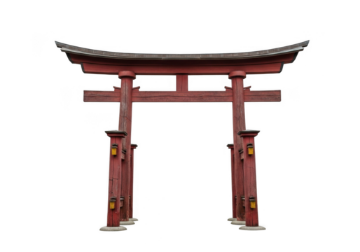 Traditional japanese torii gate, a vermilion wooden structure with a curved roof, isolated on transparent background