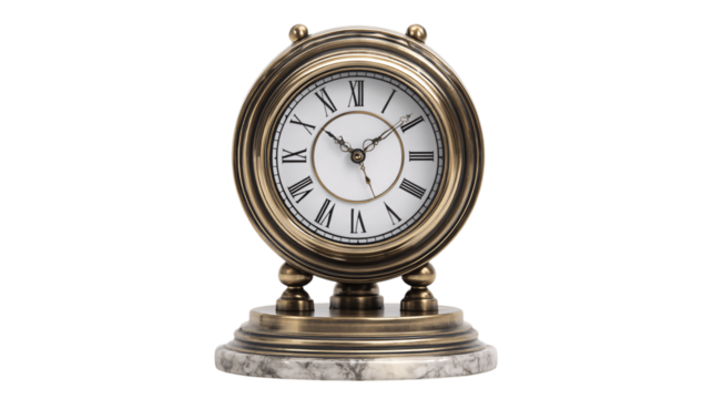 A standalone vintage bronze desk clock, white background --ar 16:9