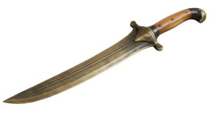 Isolated Ornate Bronze Dagger with Wooden Handle