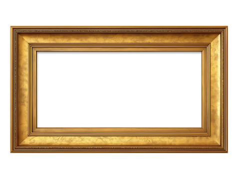 a photorealistic rustic slim golden painting frame horizontal narrow 169