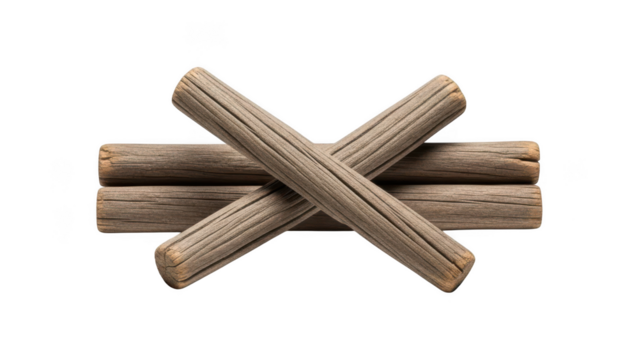 Rustic wooden logs crossed over each other in an x shape forming simple fence barrier