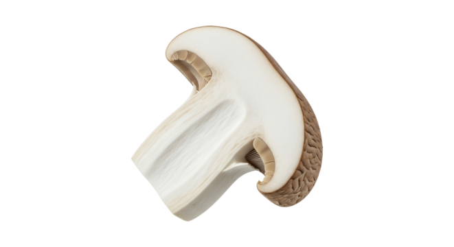 Detailed cross-section of a shiitake mushroom showcasing its intricate texture and structure, a culinary delight, ideal for gastronomy concepts