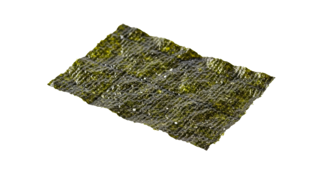 Crispy seaweed snack with rich umami flavor, enhanced with subtle salt crystals on a clean background
