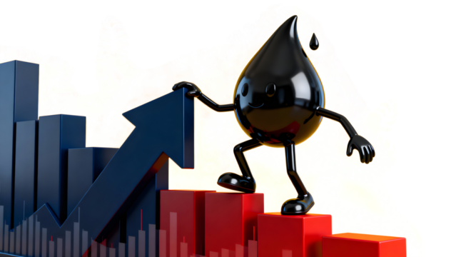 Rising Oil Prices Concept with 3D Oil Droplet Climbing Up Financial Chart