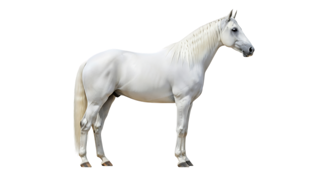 Majestic white Andalusian horse standing gracefully elegant purebred equestrian beauty in motion isolated on white background