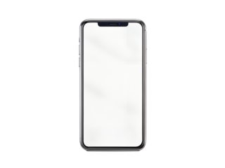 A modern smartphone with a blank white screen, isolated on a transparent background