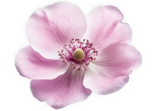 Delicate white anemone flower with yellow center isolated on transparent background for design and decoration