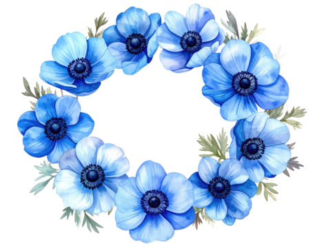Beautiful blue anemone flower photography, floral design element, botanical illustration, spring blossom, isolated on transparent background