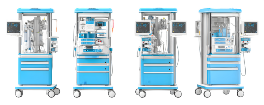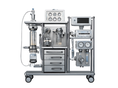 Realistic Isolated Studio-Lit anesthesia machine arranged i PNG cutout, digital artwork, ideal for video overlays and advertising, premium resource, royalty-free, HD asset