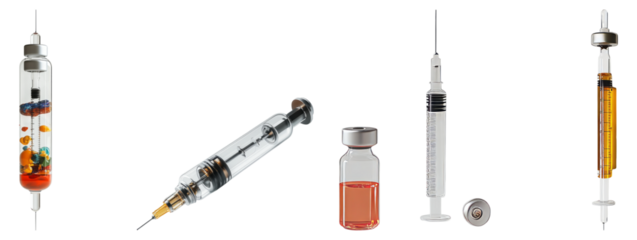Syringes and Vials with Liquid for Medical and Scientific Use, Isolated on Transparent Background