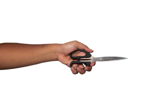 a person's hand is holding a pair of scissors, the concept of being defensive or threatening. photo illustration of murder, robbery.