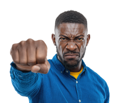 Aggressive gesture of anger portrait isolated on transparent background