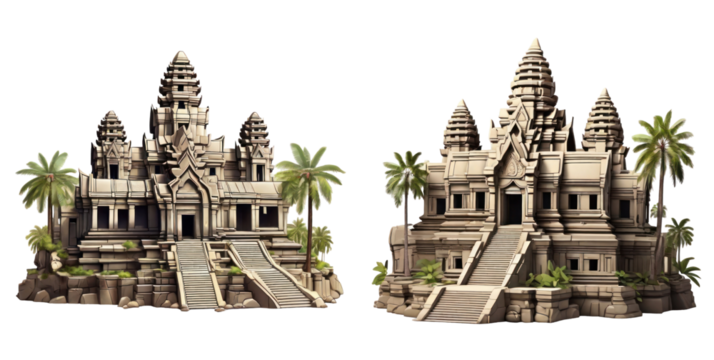 set of angkor wat isolated on transparent background